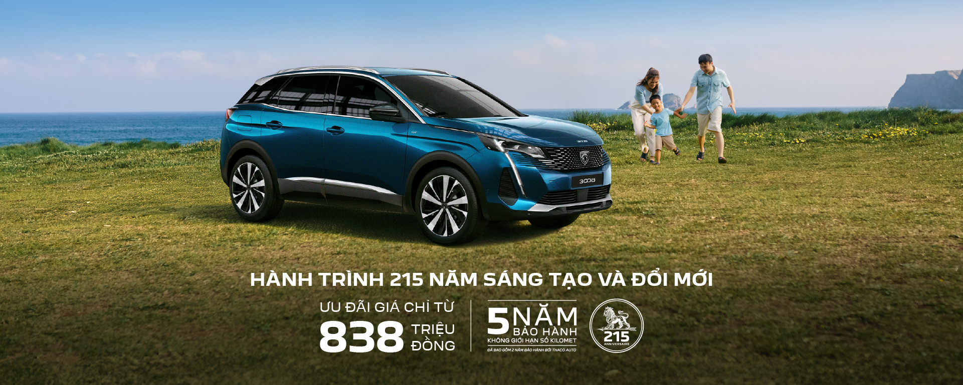 - New Peugeot 3008: Trả trước chỉ từ 164.000.000 VNĐ + Ưu đãi lên đến 121.000.000 VNĐ + Ưu đãi thêm dịch vụ Phủ gầm chính hãng